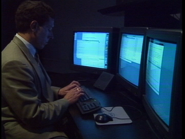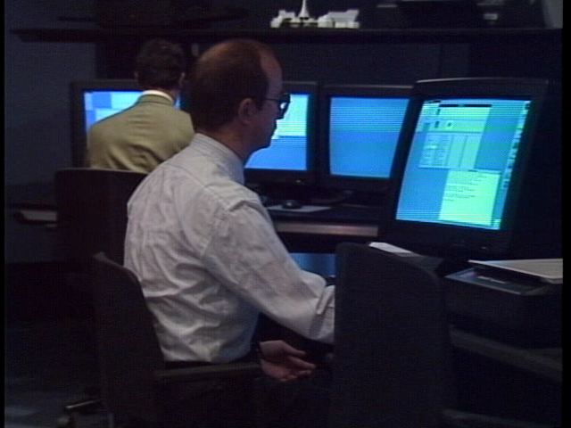 You can also see what appears to be a Newton and two of the projection screens are running 4DWM (AKA, Irix, which means that there are SGIs nearby).