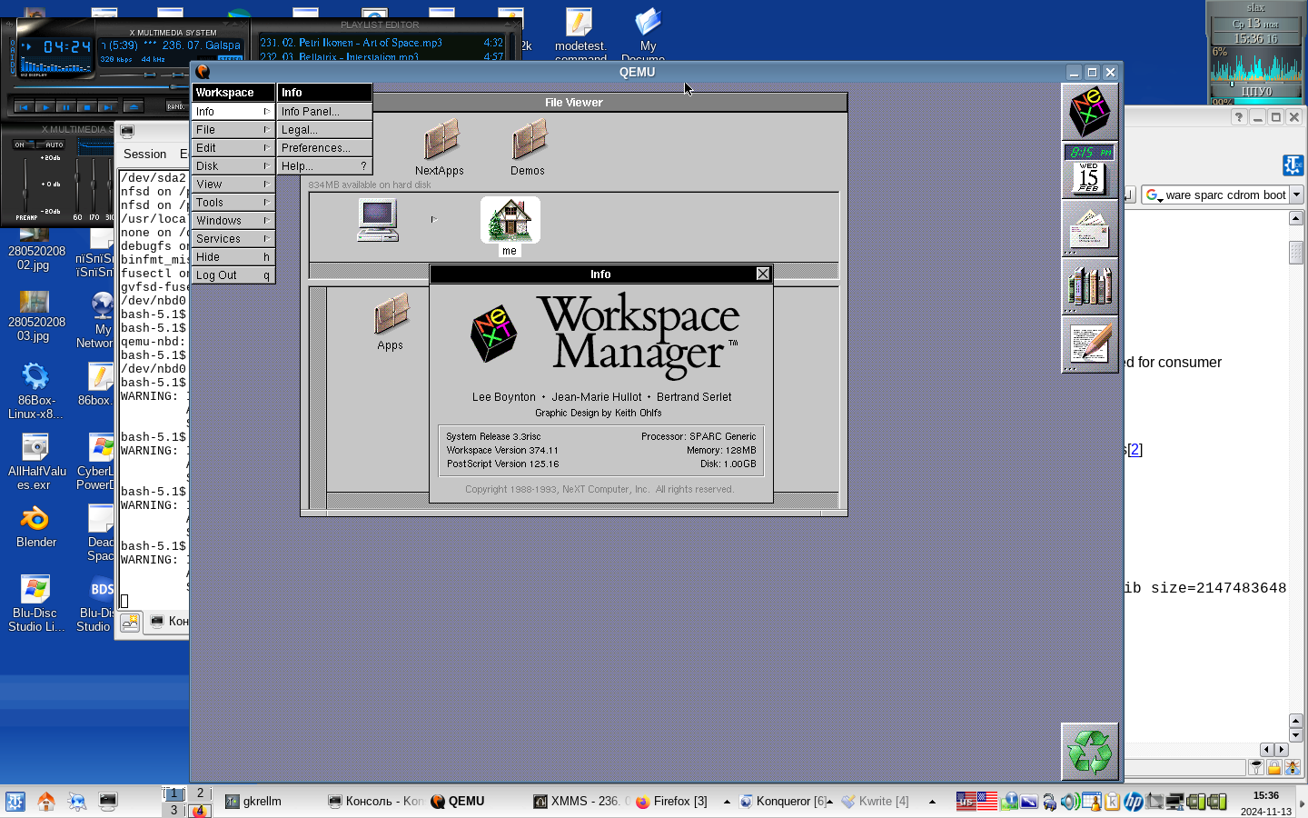 also ~2016 fork of qemu with cg14 framebuffer, may be a bit better at graphics? (tcx seems to glitch on window movement)
