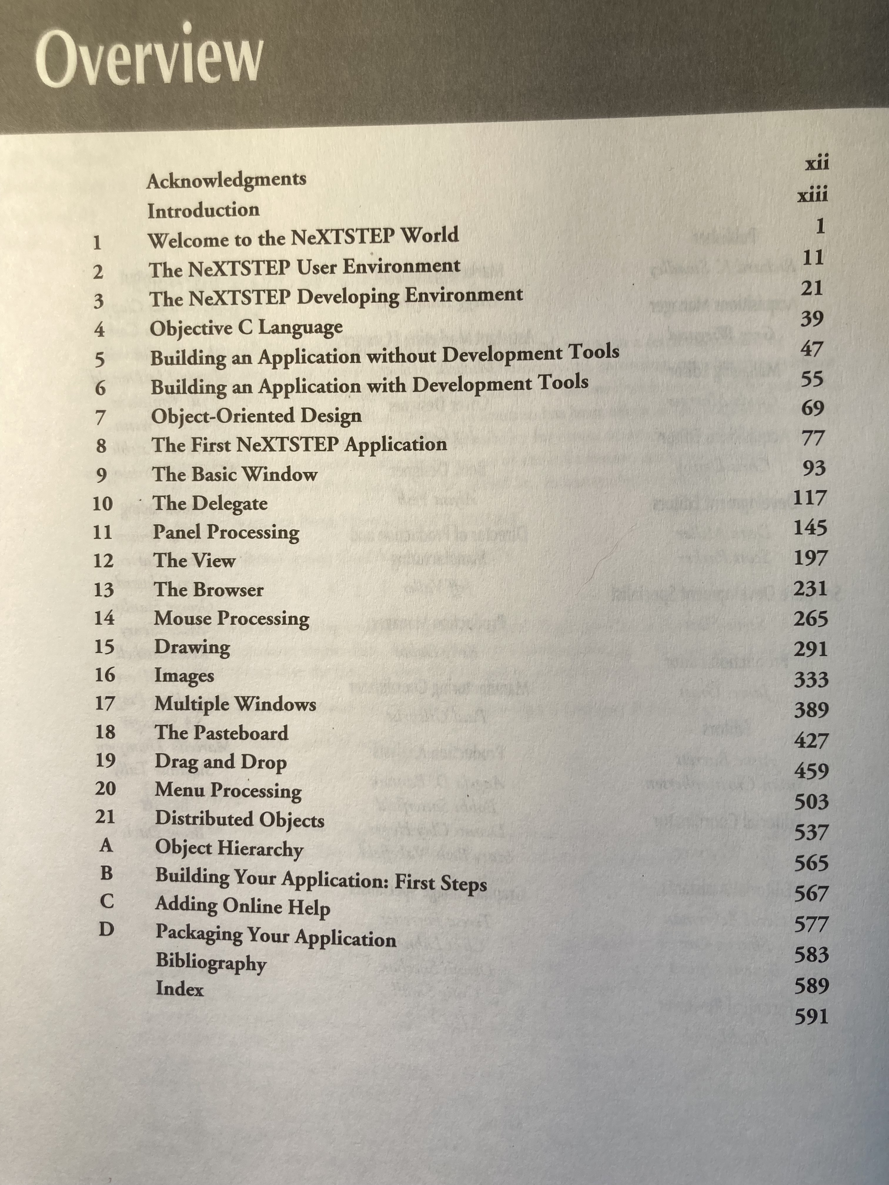 Here's the Overview of the ToC for Developing NeXTSTEP Applications ...