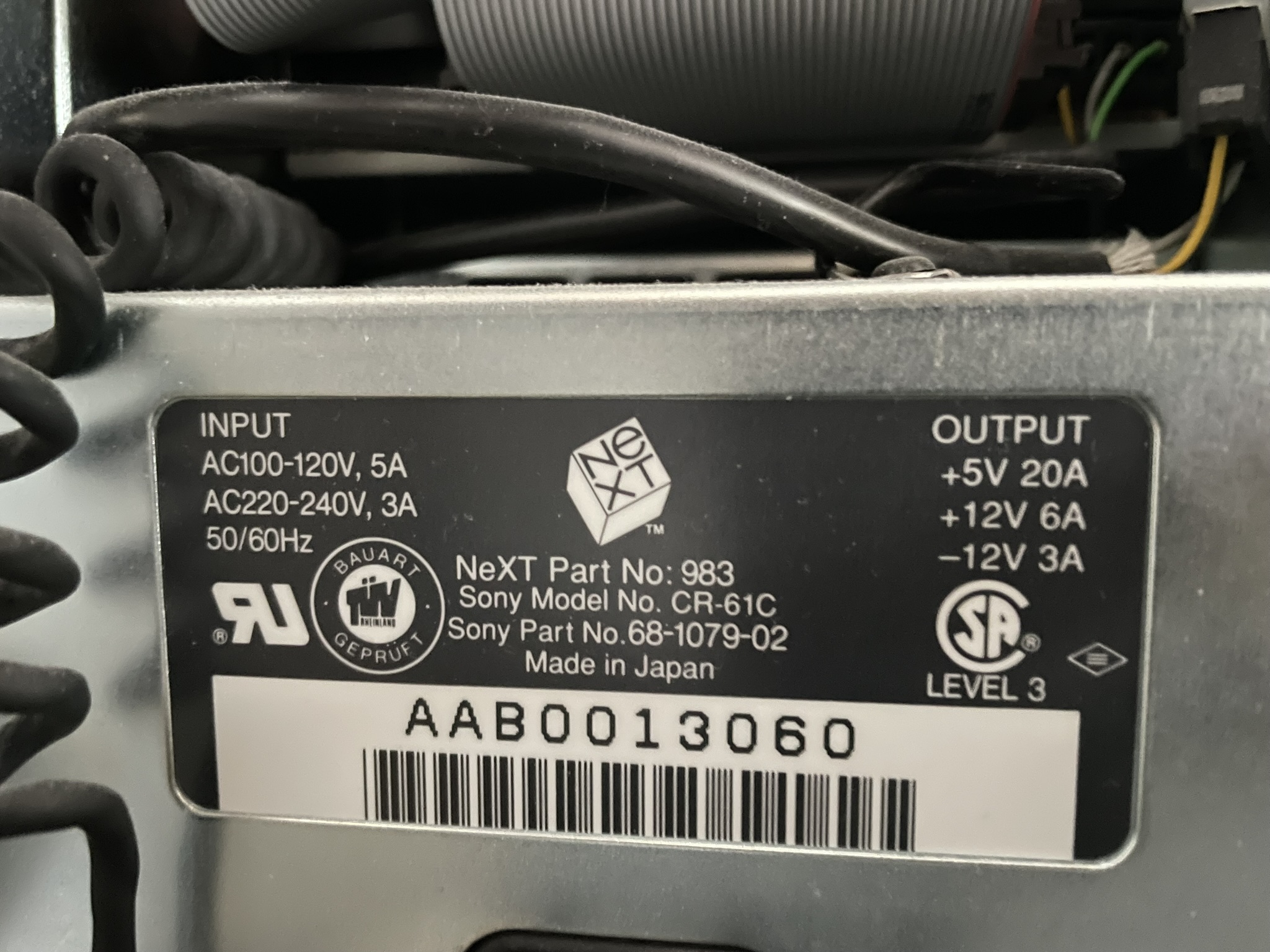 - a NeXT TurboCube with ND, housed in a refurbished NeXT computer case from 1989 (serial AAK0016264, power supply AAB0013060)