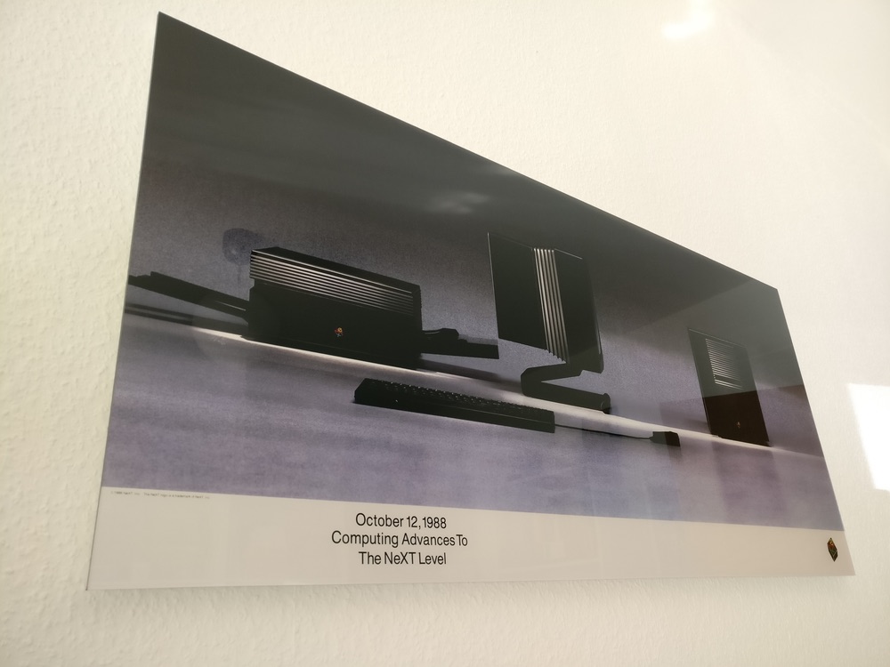 I have an original of this poster from when I worked at the University of Utah bookstore computer section around 1990, my boss gave it to me as a parting gift. It has some minor water damage on one corner. I'm interested in taking offers rather than selling on eBay. I also have a NeXT t-shirt and a NeXT bag somewhere (I'll need to look for those).