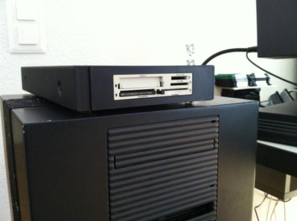 Hello NeXT Community: For this project I took a DOA External Exabyte drive enclosure and painted it NeXT black. Then modified it to work with a 6way SCSI card reader , it looks pretty cool!