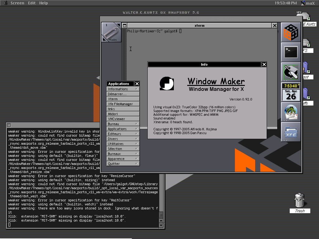 And here ssh-Xing in my MacMini running WMaker :