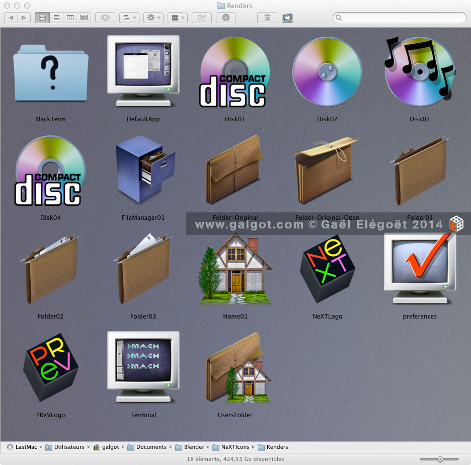 I'm doing a set of hires icons for Mac, inspired by the NeXTstep icons. here is what i've done so far :