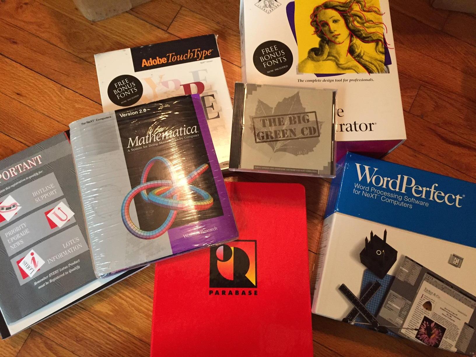 Wow, thats a really good starting point for collecting NeXT stuff. Besides the rare GEM DSP module i would never use that floppys and let the 50 pieces box untouched as collectors item :-)