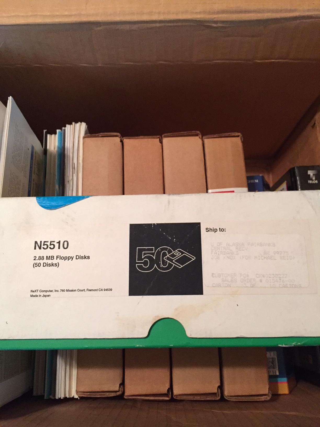 I wasn't expecting the floppies or DSP module since they were never mentioned. I knew I was getting literature and software. I literally have three boxes of NeXT/Unix books. I'm with you about not using the floppies. I have no intention of doing so. If I need to use ED disks, I have other non NeXT branded disks available.