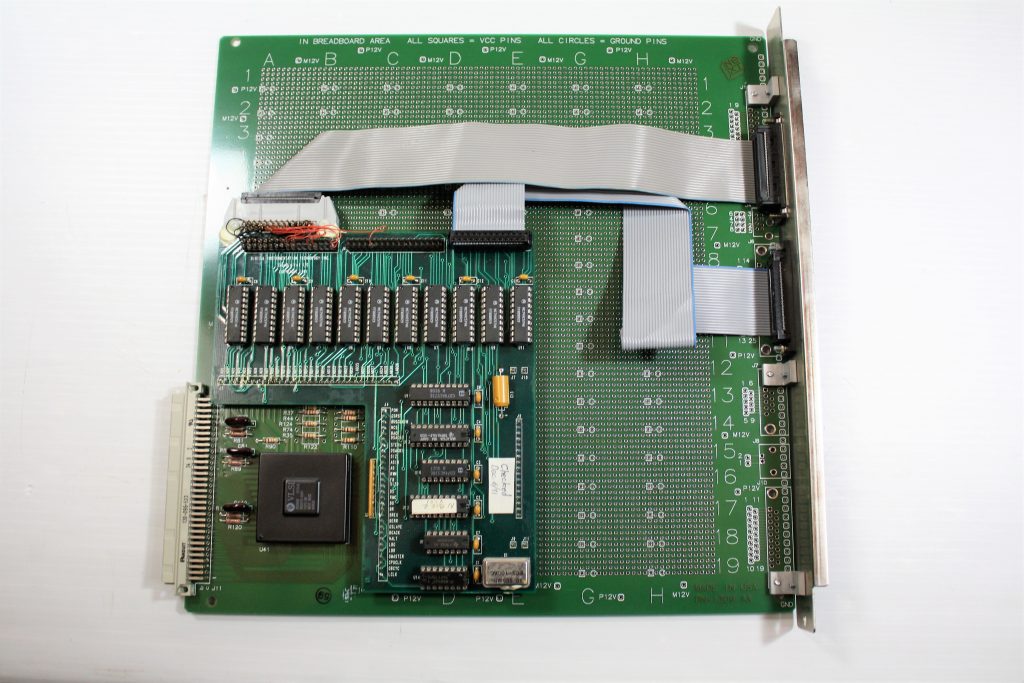 Aparat from the Burr Brown DACs there is an ADC678JD analog-to-digital converter on there (12 Bit which maybe forms the last part of the board's name: DAZZL-12AD. And an ADG507A analog multiplexer. Some timers at the top I guess.