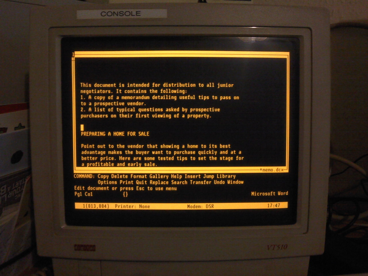 Yes yes, that is Microsoft Word... and yes, it is running on Unix (SCO OpenServer v5.0.3 to be exact)... but I mean the DEC VT510 terminal in this case :)