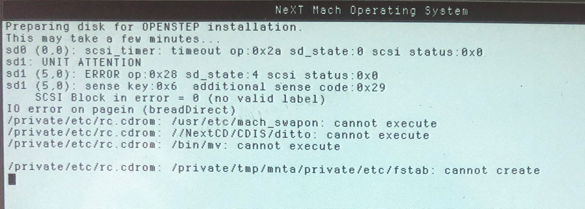 I have a nextstation 25Mhz 040 that I'm attempting to replace the disk with a scsi2sd v6 adapter. I have worked through other similar posts and cobbled together a config. However I'm still getting errors when attempting to install OpenStep 4.2 to the system. The install media is on an external plexstore scsi cdrom from the same vintage.