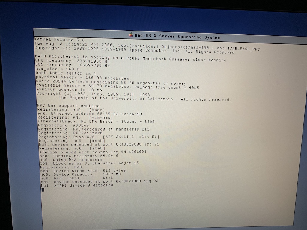 However I did manage to get the laptop to boot into Rhapsody 5.6 again by booting it on a 9.2.2 Live CD, which was able to identify the UFS disk in Start Disk and mark it as bootable.