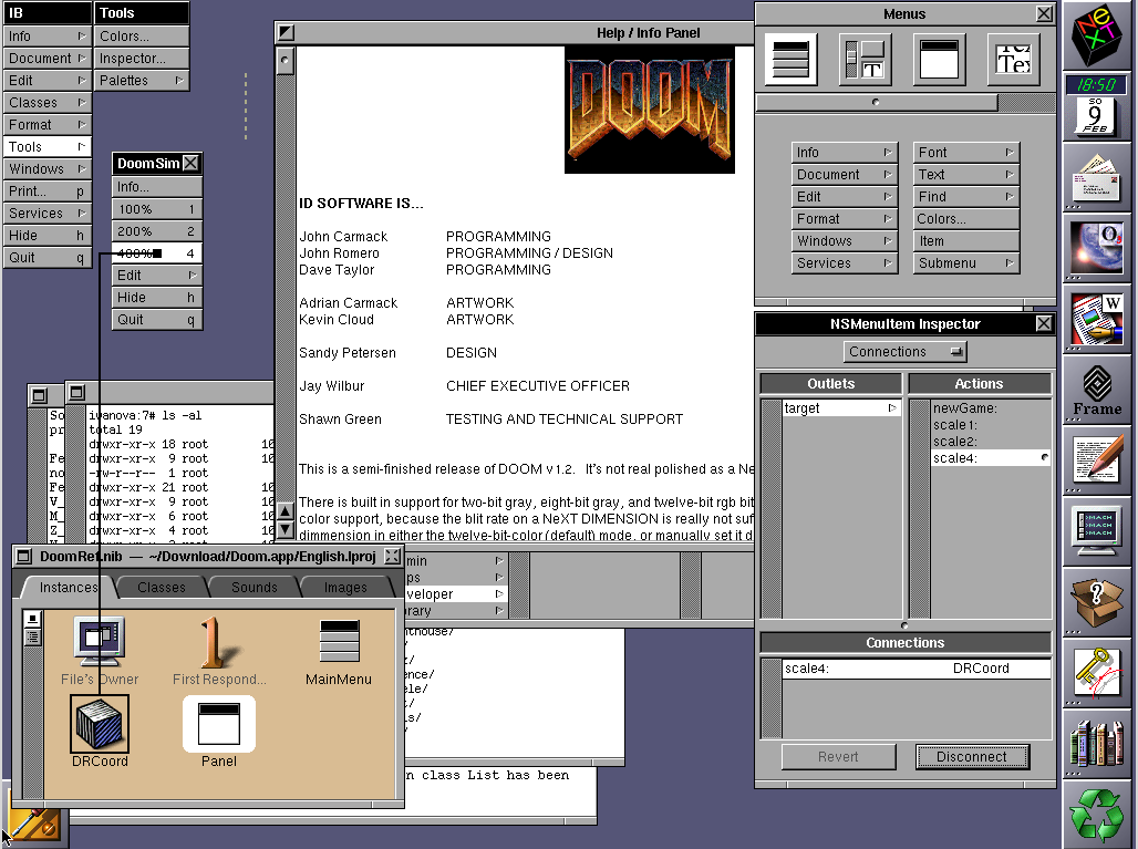 Have tried to re-construct it with OpenSteps InterfaceBuilder, but the resulting NIB crashes, therefore can not present screenshot of 400% Doom :(