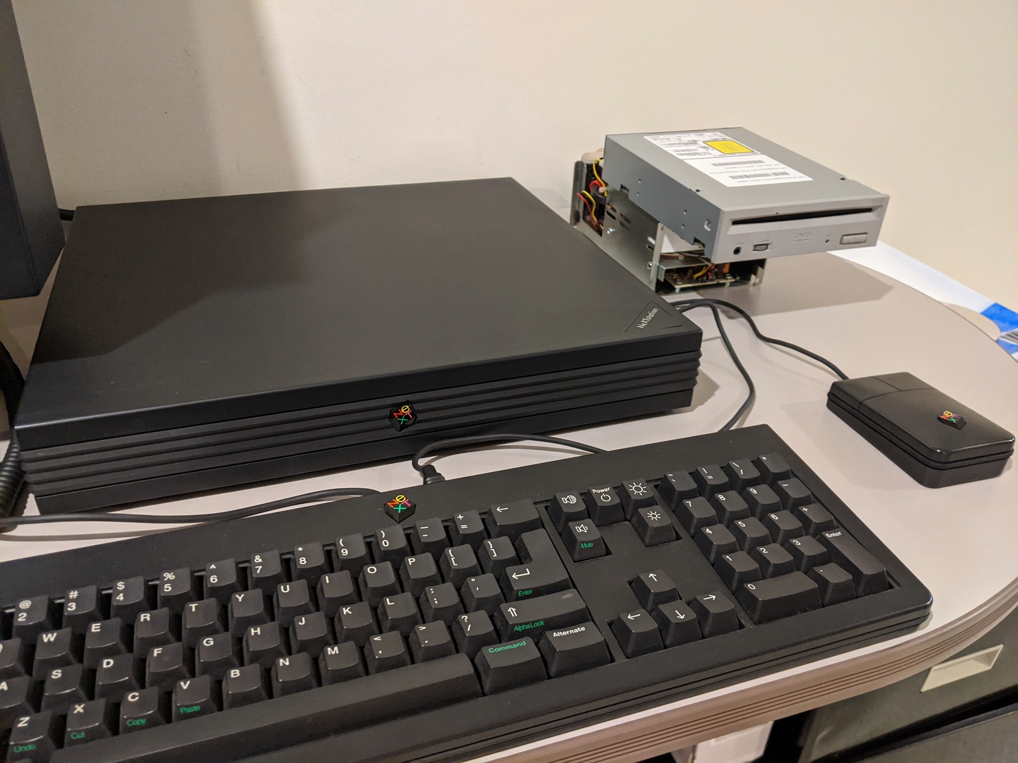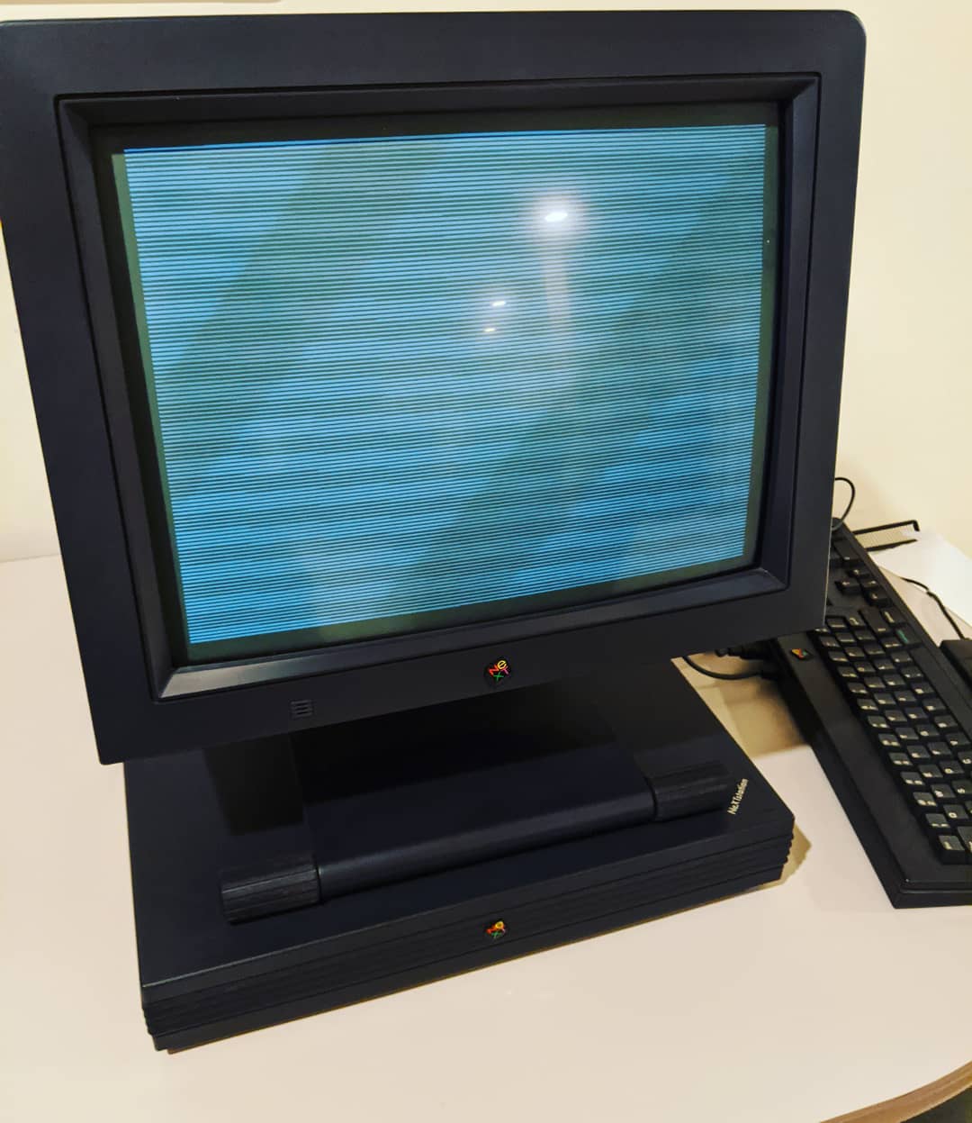 Picked up a NeXTSTation with matching monitor, keyboard and mouse this weekend -- only $250 complete. Seller reported that it worked last time he used it but that it was showing "diagonal lines" when he tested before the sale. I got it home, checked the logic board and clock battery, then fired it up. This is what I got. Image is stationary and stable...just useless.