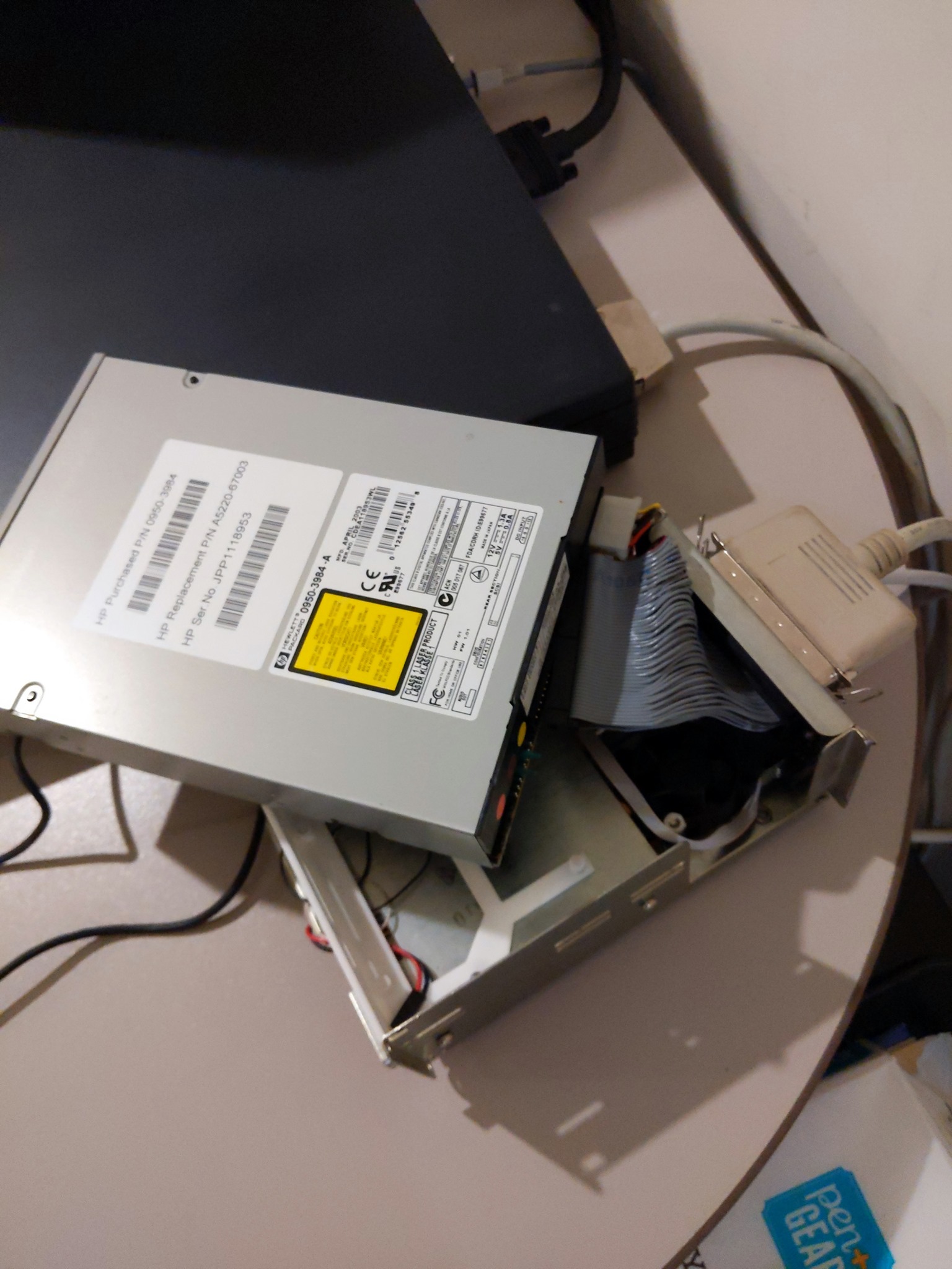 I'm happily up and running now, and have ordered some parts so I can setup a SCSI2SD. Thanks again to Rob for selling me a compatible SCSI optical drive -- I cobbled together a way to connect it via an old Mac Plus hard drive enclosure (3rd party, not Apple original). See pictures.
