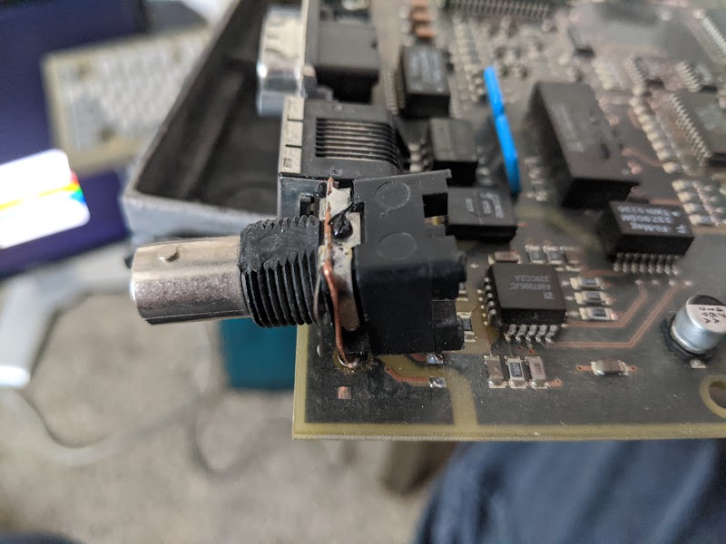 But one thing that kinda bugged me even though I can't remember the last time I setup a 10Base2/BNC network was the fact the BNC connector was broken off the motherboard and just kinda floating. I figured it was still attached via the ground or center post but the mounts just broke off and didn't pay that much attention to it after that.