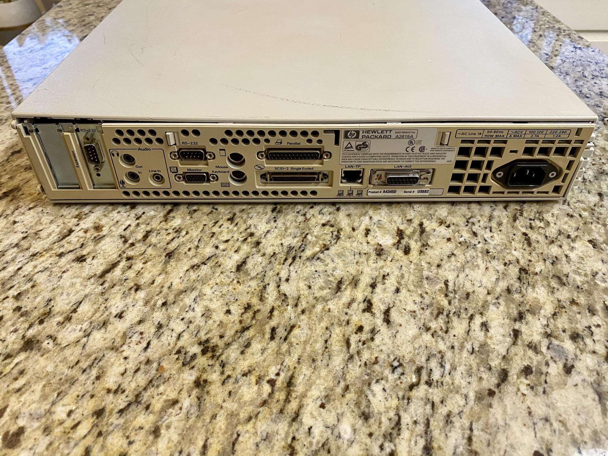 This is a ~$15,000 (in 1995 dollars!) UNIX workstation built around HP's PA-7100LC CPU running at 100MHz. It featured HP's insanely-clever "Color Recovery" system for displaying photorealistic graphics on an 8-bit graphics system. This particular model would've been the "top of the line" entry, sitting atop similar machines clocked at 60MHz and 80MHz. As the top-end version, this one runs faster and has 2 extra RAM slots. Along with running HP's own HP/UX variant of UNIX operating system, these could also run Linux, OpenBSD, NetBSD and coolest of all (and honestly the reason I'm so psyched) a special PA-RISC edition of NeXTSTEP!