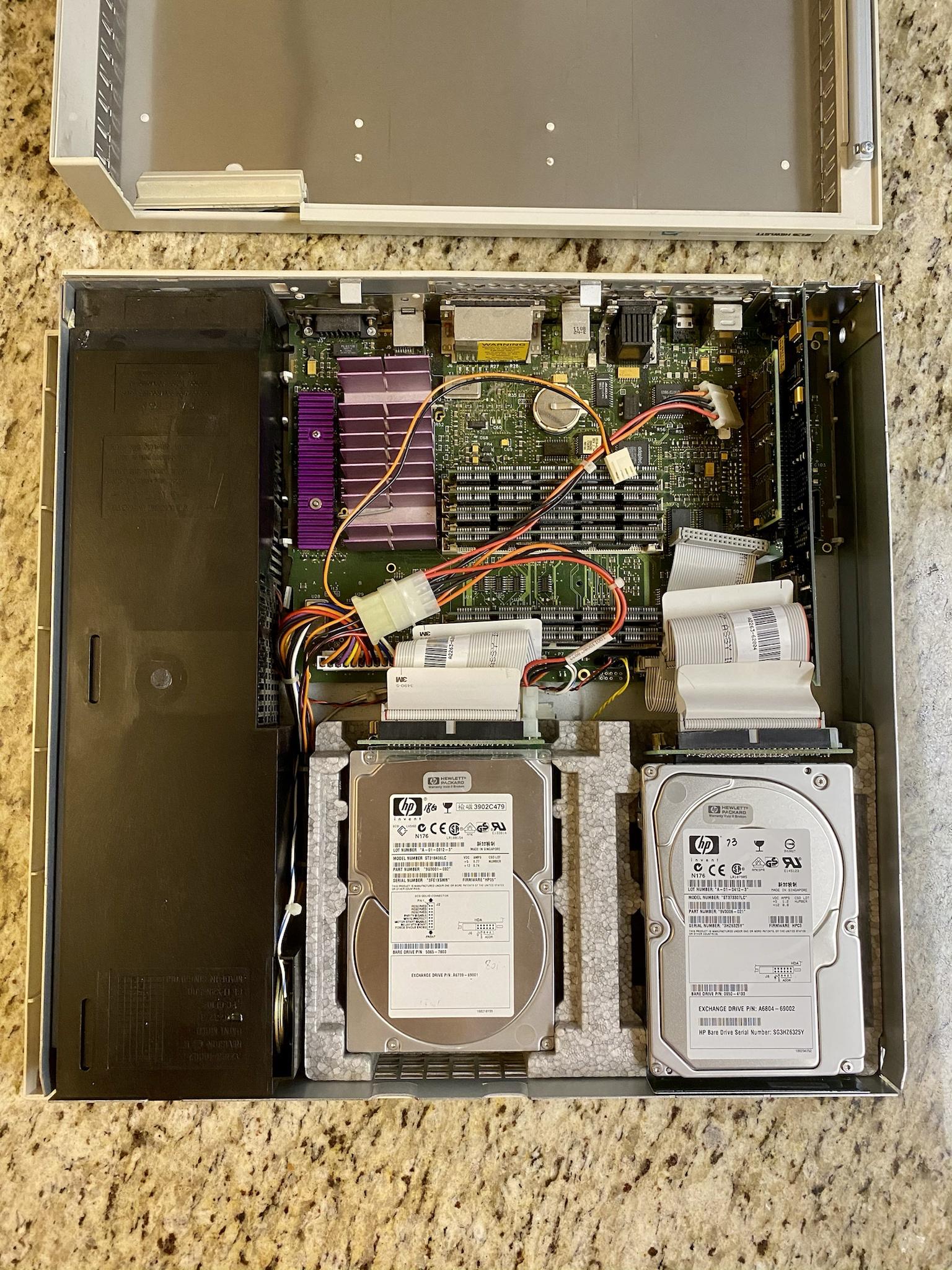 There were some language barriers between me and the original owner I got it from, but he assured me that it has a working install of HP/UX 11 on one of the internal SCSI drives, and 64mb RAM. Until I get it running, I won't know how much VRAM it has, or what stuff may be found on those SCSI drives. I asked the original owner what kind of work he used to do on the machine, and he replied "computer work!" so it really is a mystery!