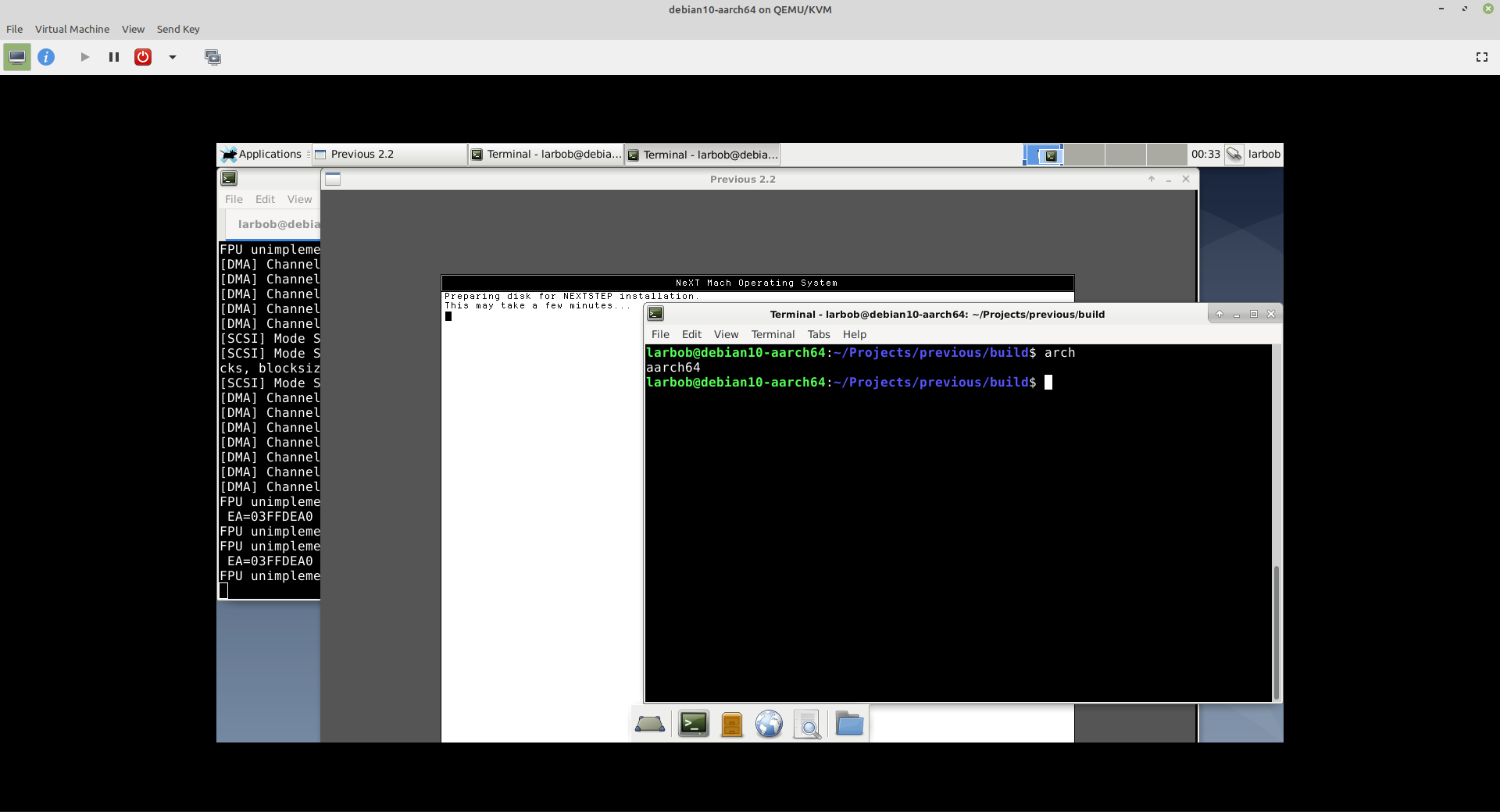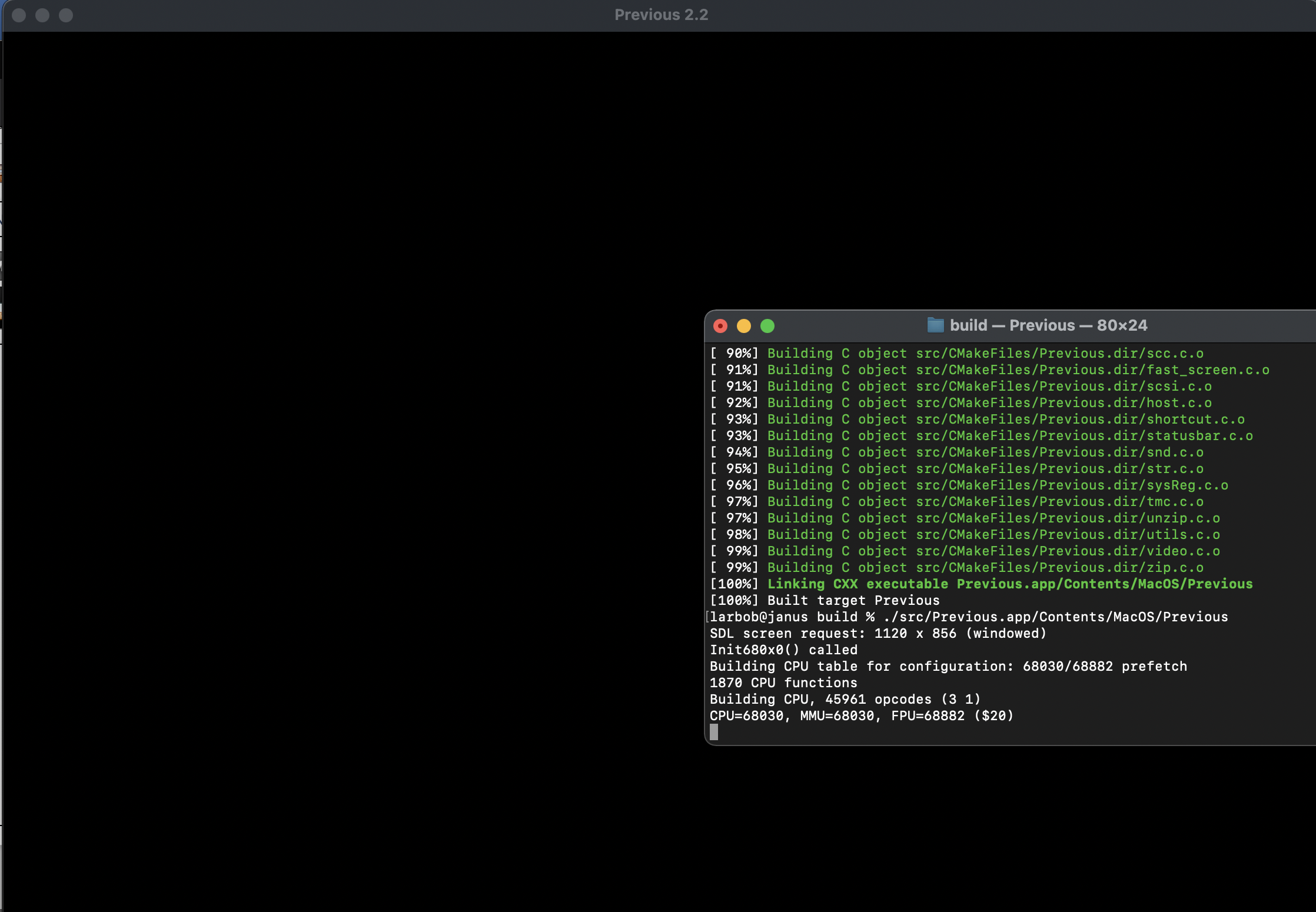 Process 58064 launched: '/Users/larbob/Projects/previous/build/src/Previous.app/Contents/MacOS/Previous' (arm64)