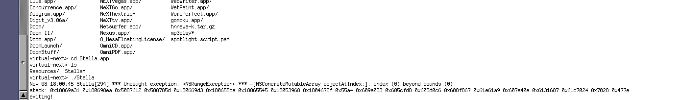 There is a copy of Stella for Intel floating around. Does it run for anyone? I could not get it to run on OPENSTEP 4.2 Intel