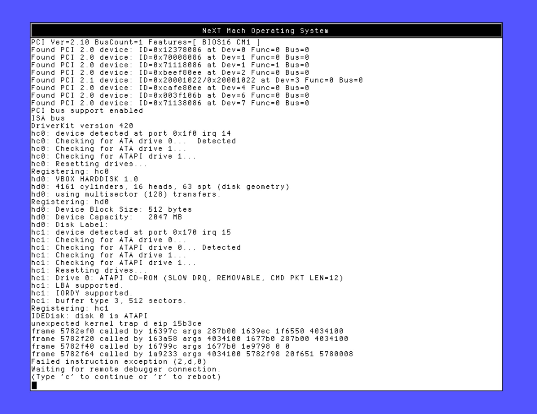 I am trying to install OpenStep 4.2 in the VirtualBox 7.0 Beta for Apple Silicon. Install process hangs during first mach kernel boot.