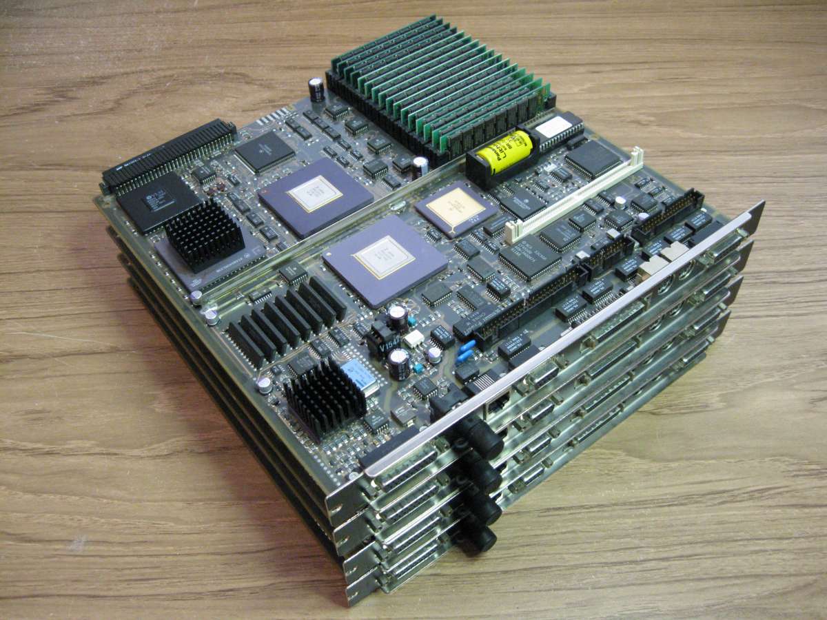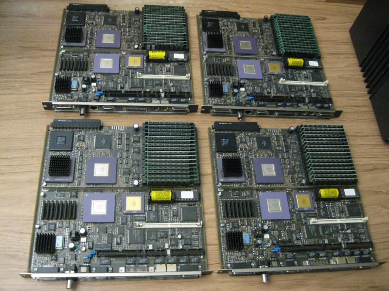 @helf! It has four 25MHz 040 boards with v66 ROMs and all RAM slots full. The backplane has been modified with jumpers by an unknown individual. I'm not sure that I would feel safe turning this on even if the power supply were new, much less 30+ years old. I guess that I could do the ATX conversion on the power supply with a 1000W unit, but I'm not sure the backplane traces would like that. I've never powered it up so I'm not sure how things are set up. It has a hard drive and MO drive. I have to admit that it looks like the perfect candidate for a Zilla powered chess champion.