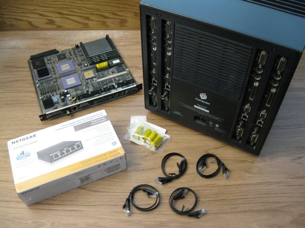 I've gotten over the initial shock of finding this Cube, so it's time to throw rational thinking and personal safety out the window and build a machine to run 'Zilla.app'. This is going to take some time and testing to figure out the best path forward. I have an extra 25MHz cube motherboard in case one is dead or fails during use, although it needs a good recapping. There's a new $15 network switch that may or may not work for this application, we'll see. I also have a BlueSCSI v2 on the way for testing.