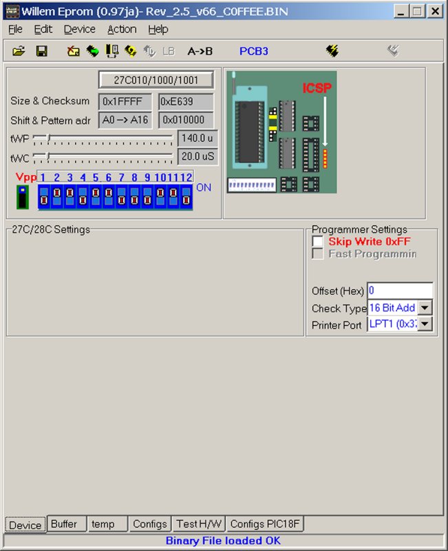 Next the modified ROM file is read into the EPROM programmer software and is ready to be programed.