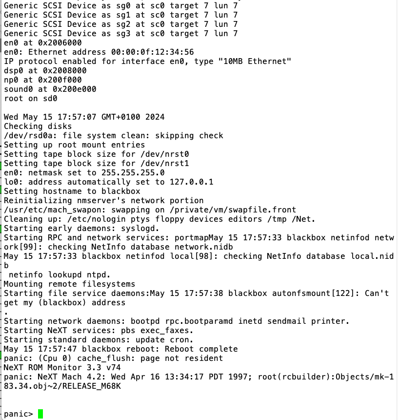...at least OpenSTEP 4.2 is not too happy with a serial console, though, and crashes with a panic. This does not happen when using the ADB peripherals and monitor...