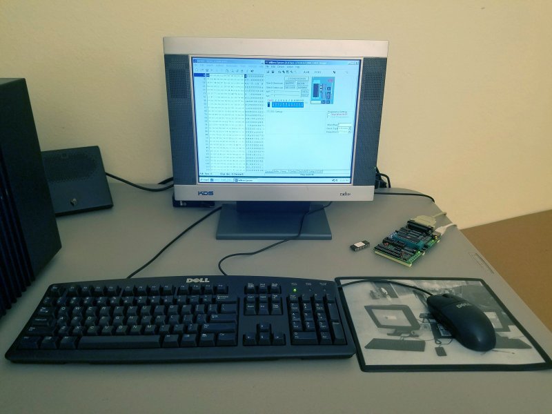 Recently I recapped and repaired a 040 cube motherboard that was damaged during shipment years ago. It looked like the repair failed because the board wouldn't boot. The ROM chip was replaced as a last ditch effort to get the board running, and that turned out to be the boot issue. So that meant that I had another NeXT box without a ROM, so it was time to break out my ancient EPROM programmer to create a new one. The old eBay special EPROM programmer that was used has a parallel port interface, and it was necessary to set up an old WinXP box to use the programming software that came with the unit. I had an old Dell 3000 with Windows XP and a parallel port so that was set up to program a new EPROM.