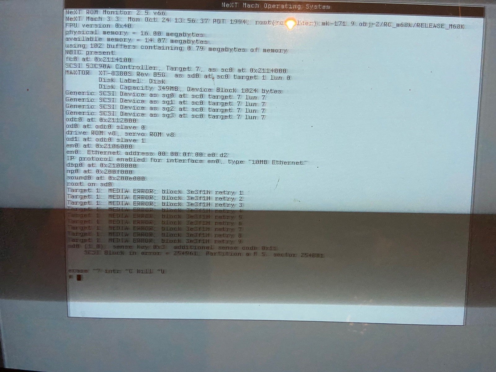 Unfortunately my NextCube N1000 has now a problem. During the booting process (NextStep loading process displayed as GUI) the booting aborts and i receive this error screen. See attached jpg.