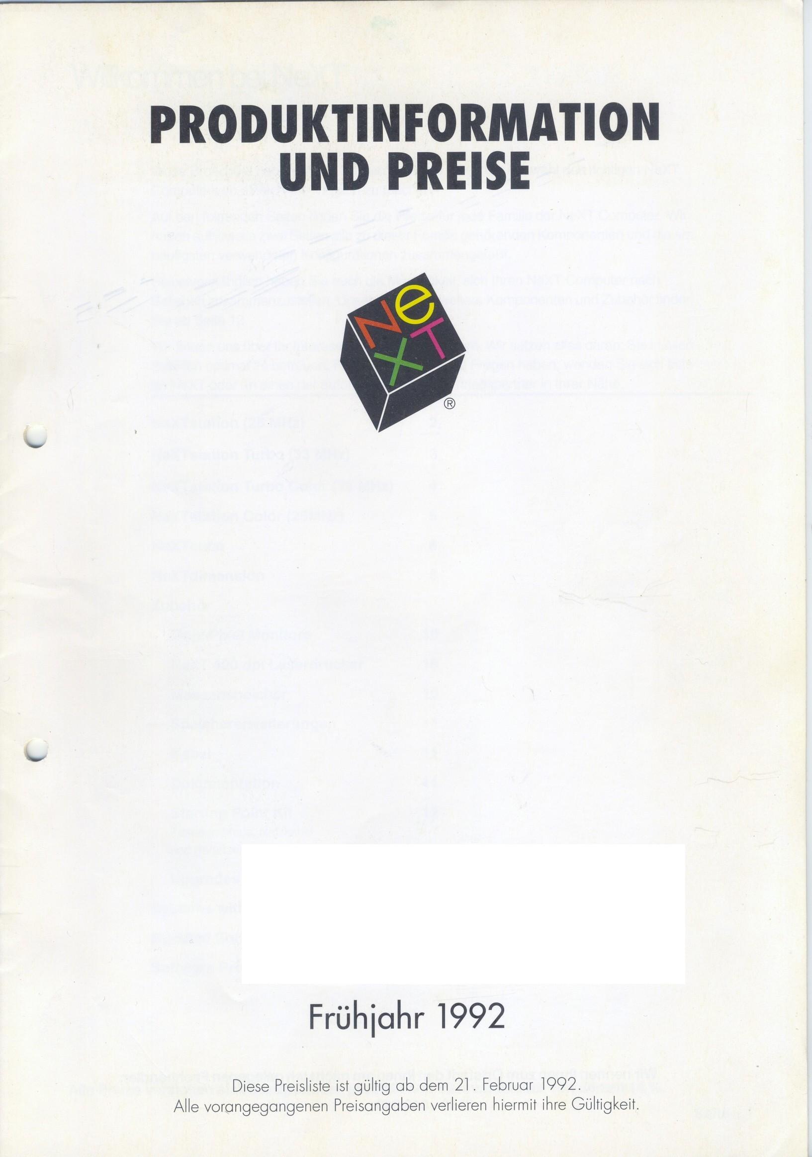 German price list: NeXT Produktinformation und Preise Frühjahr 1992