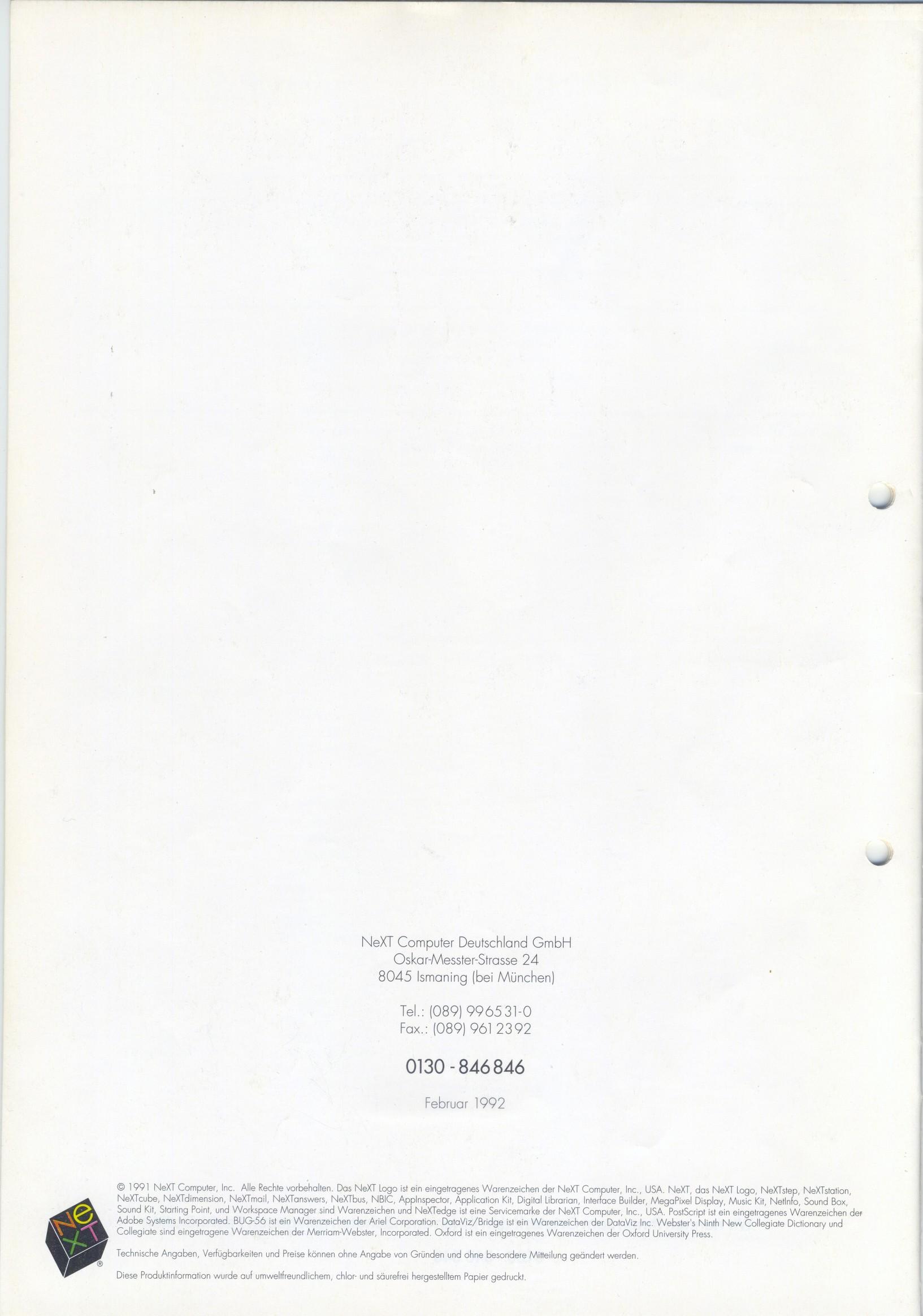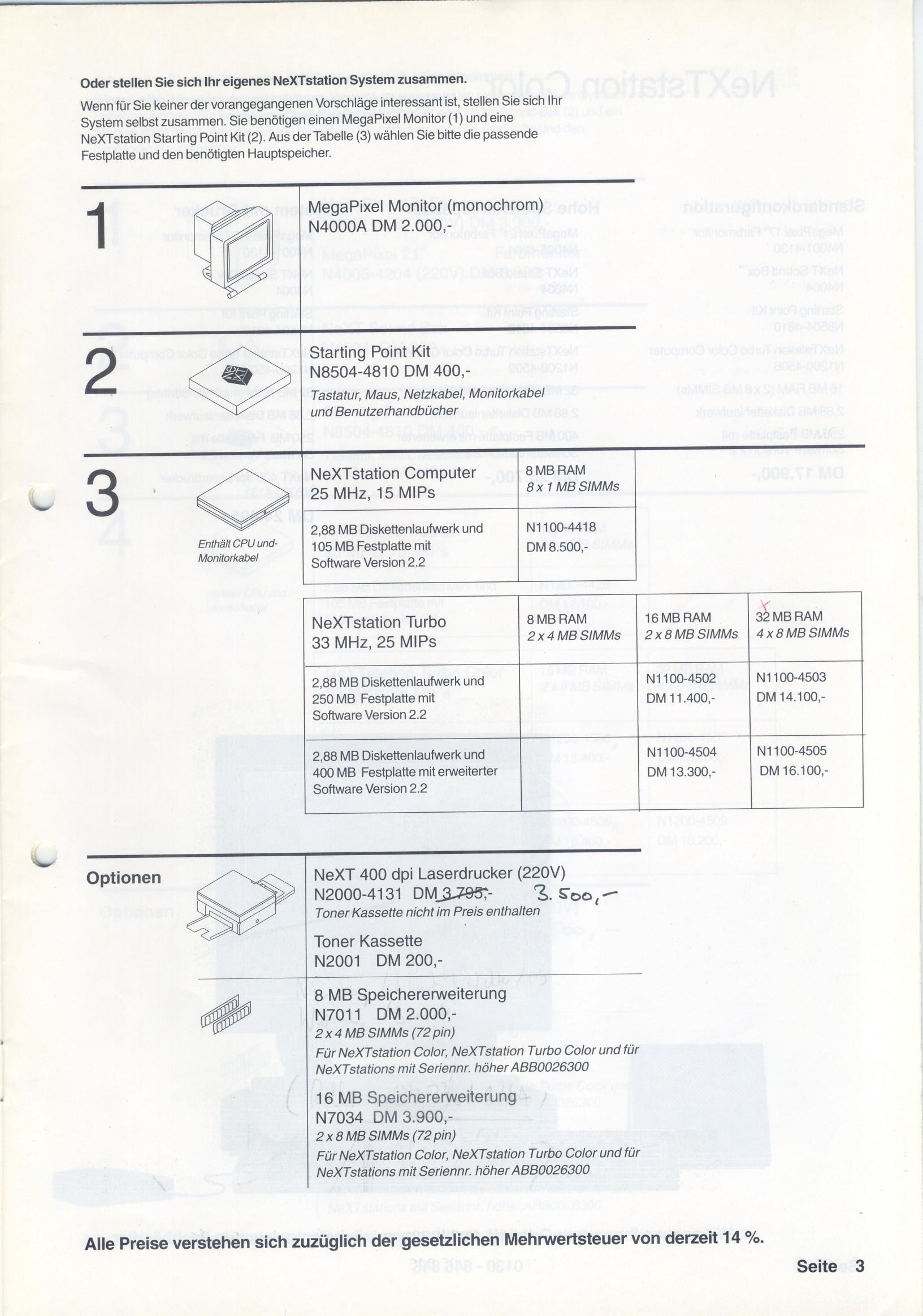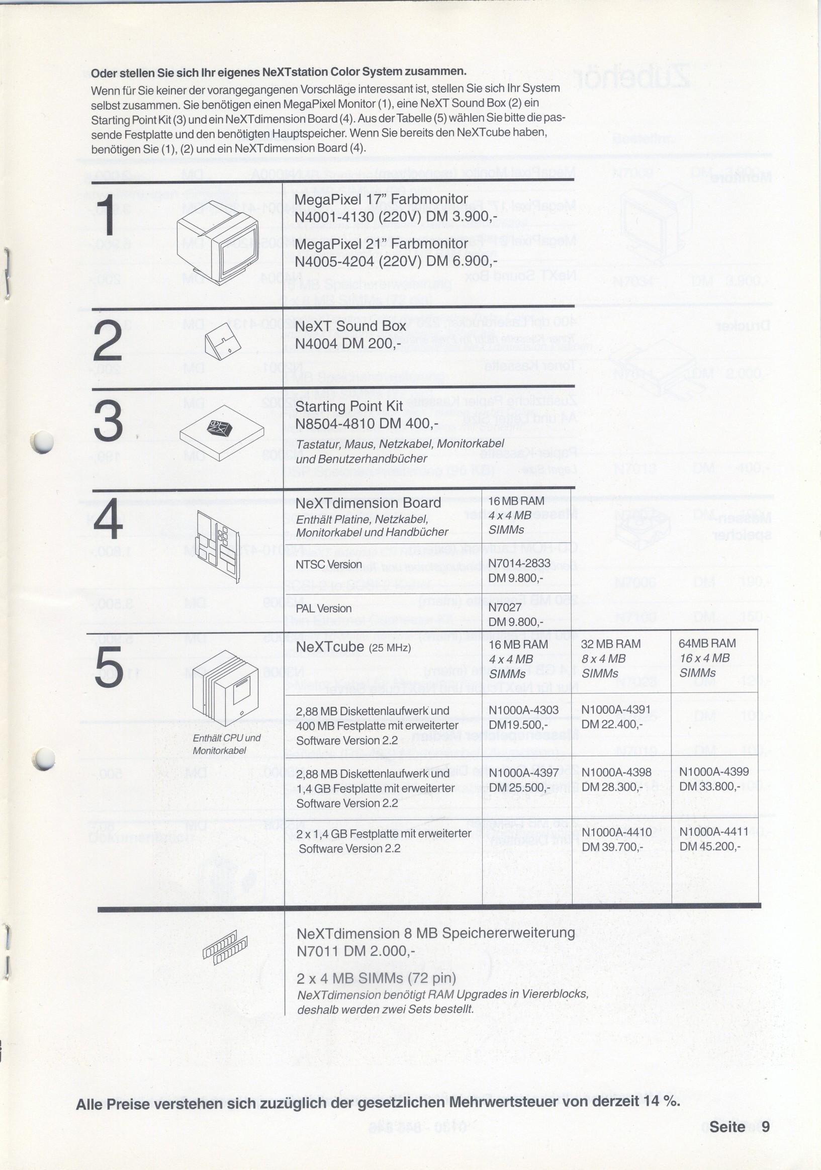 Re: German price list: NeXT Produktinformation und Preise Frühjahr 1992