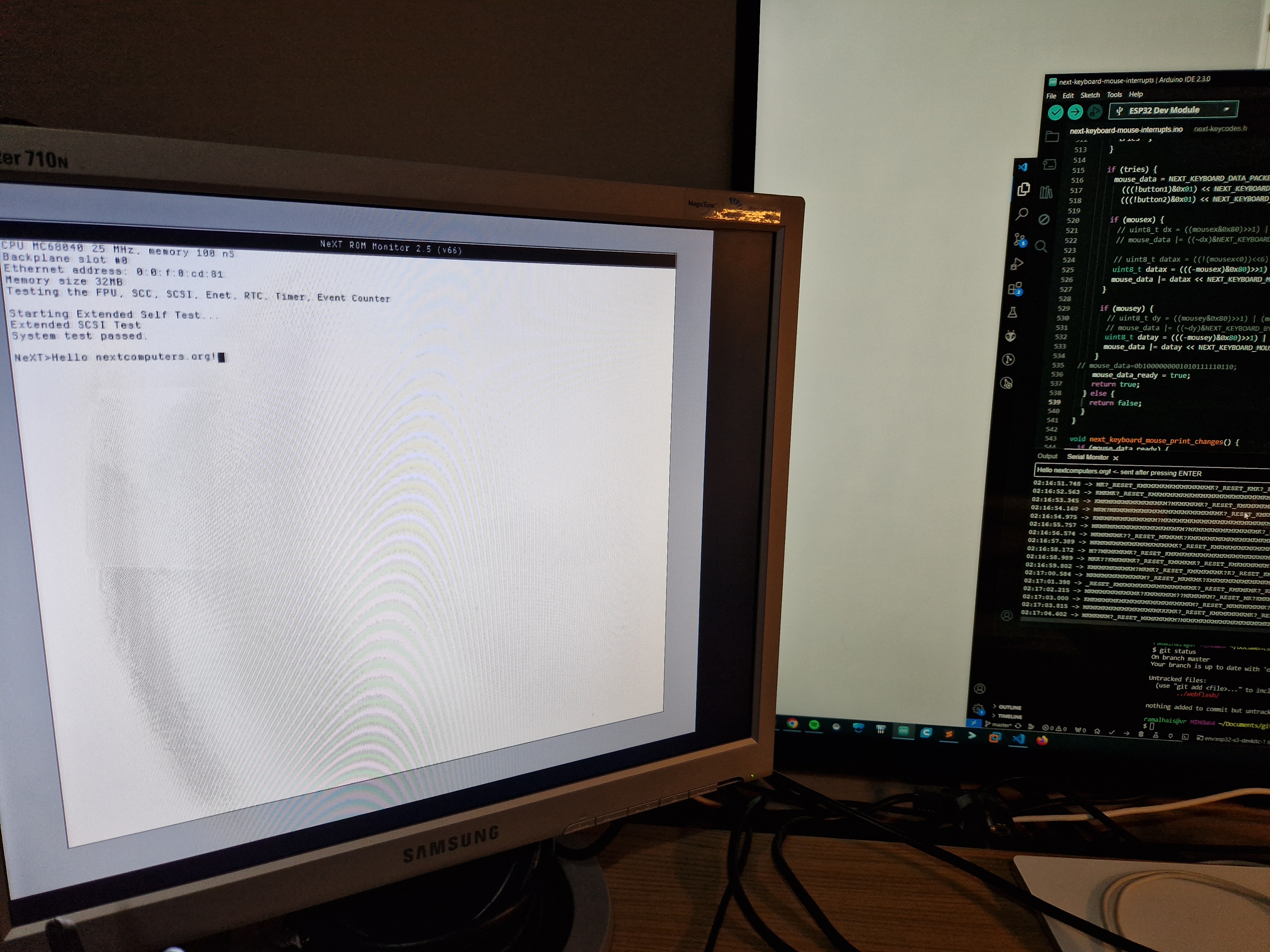 I can now send keystrokes to the NeXT and move a USB mouse and a NeXT mouse.
