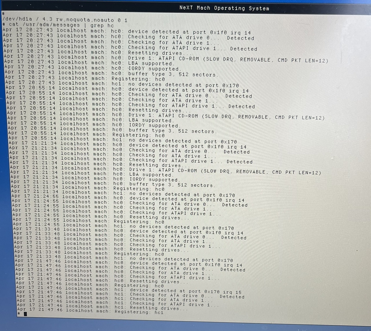 Quote from: pTeK on March 13, 2025, 05:00:46 AMSaying that NeXT is on hd0 or hd1 doesn't mean much to me, you need to display the hc0 and hc1 results as well, just edit the following below for the results instead of uploading a pic (Saves bandwidth as well). hd0 could be be hc0 master, hc0 slave, hc1 master, hc1 slave.. There really are to many options.