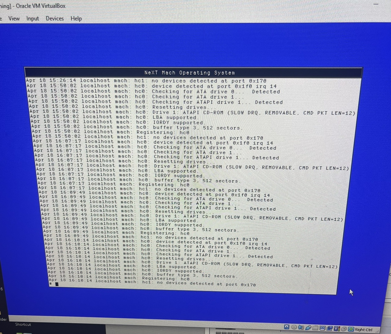 Quote from: AP on March 13, 2025, 01:35:52 AMIf I can't get it going with the virtual machine, I'm going to have to use a different computer for installation. I want NeXT to always look for HD1 to boot from. VirtualBox secondary master (hd1) allows the initial install process, but then won't boot. "Int18 boot failure". It doesn't have that issue when I put it into the laptop, but I have the issue where I have no floppy for the drivers, and yes, no CD for install files.