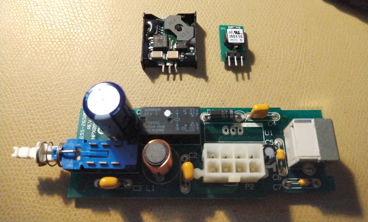 The DC/DC-converter module is an open-case but very small and partially epoxied over the components so I didn't really attempt to probe it further. Probably something had drifted out of spec making the output regulation off. I started looking on Mouser and I was able to find a similarily spec'd modern part, identical in 12V-in-5V-out, max 1.5A output and even a similar three-pin packaging. At about 5 EUR/piece this was an easy way forward and I soon had this in order.