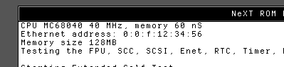 The first information you see on the screen when booting up the machine is about the CPU and memory. Screenshot is taken from Previous (68040 Turbo Color + 40MHz Nitro):