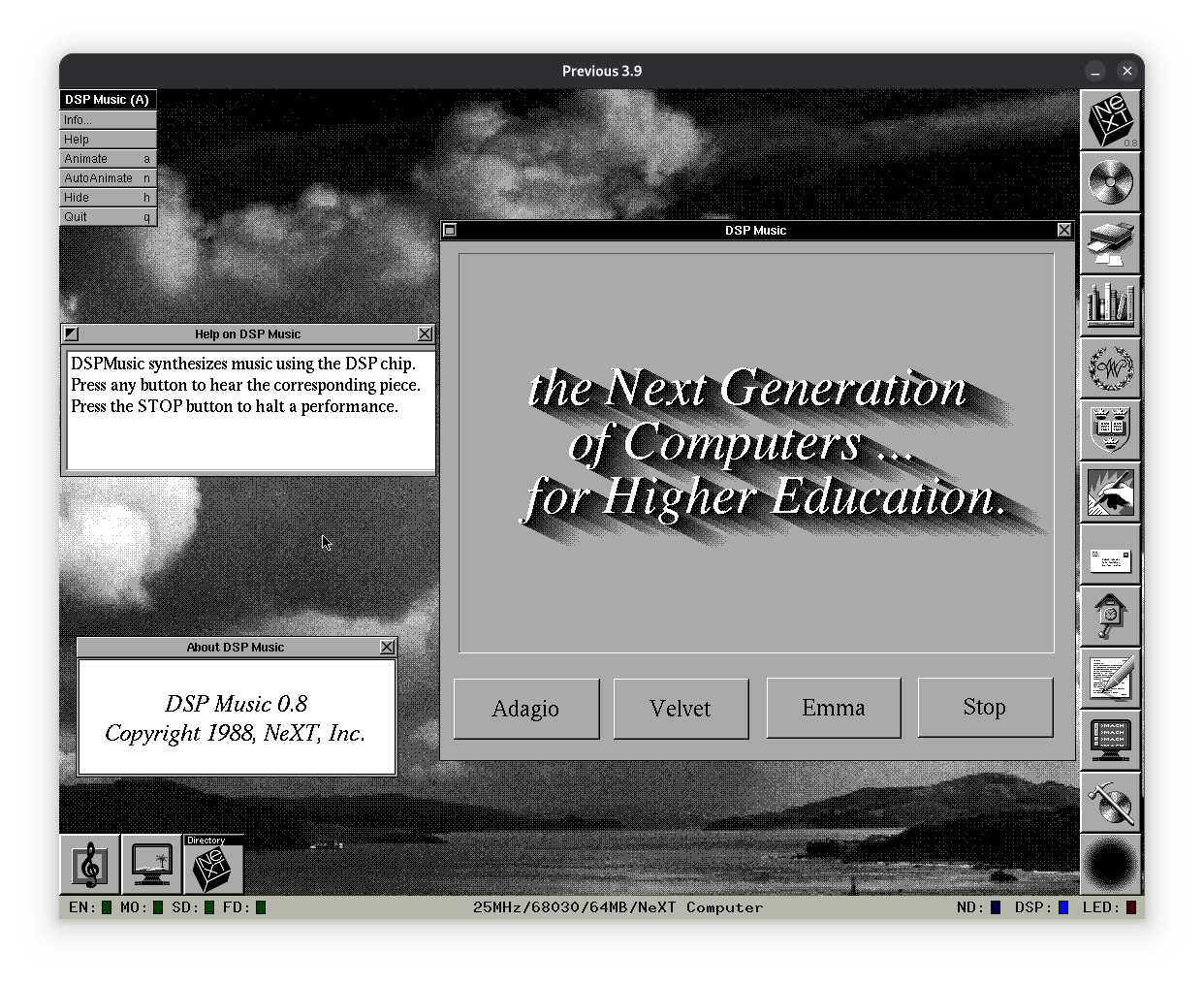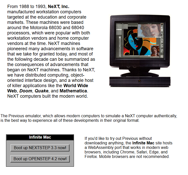 THE STORY SO FAR: Our beloved Previous emulator has no official website. It is rather tricky to find up-to-date information on it—the main mailing list is the obtusely-named What Needs to be done for a NeXT Emulator (